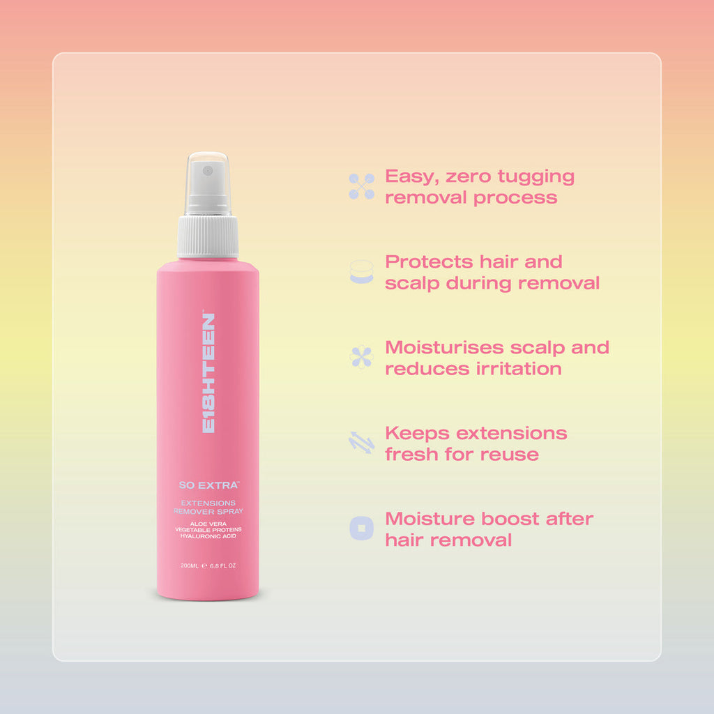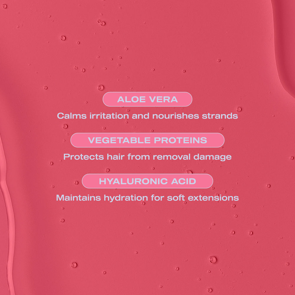- Hyaluronic Acid deeply moisturises the hair and scalp, helping to maintain softness and prevent dryness after extension removal.