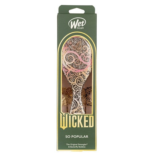 Defy tangles with the limited edition WetBrush Wicked Glinda Detangling Kit. Perfect for creating your daily looks, including detangling and styling, with less pain, effort and breakage. This Wet Brush kit includes the world famous Original Detangler with a Glinda inspired print, as well as two Butterfly Bobbies. 100% happier hair with the Original Detangler featuring exclusive IntelliFlex bristles, while the Butterfly Bobbies add some Glinda to your day.